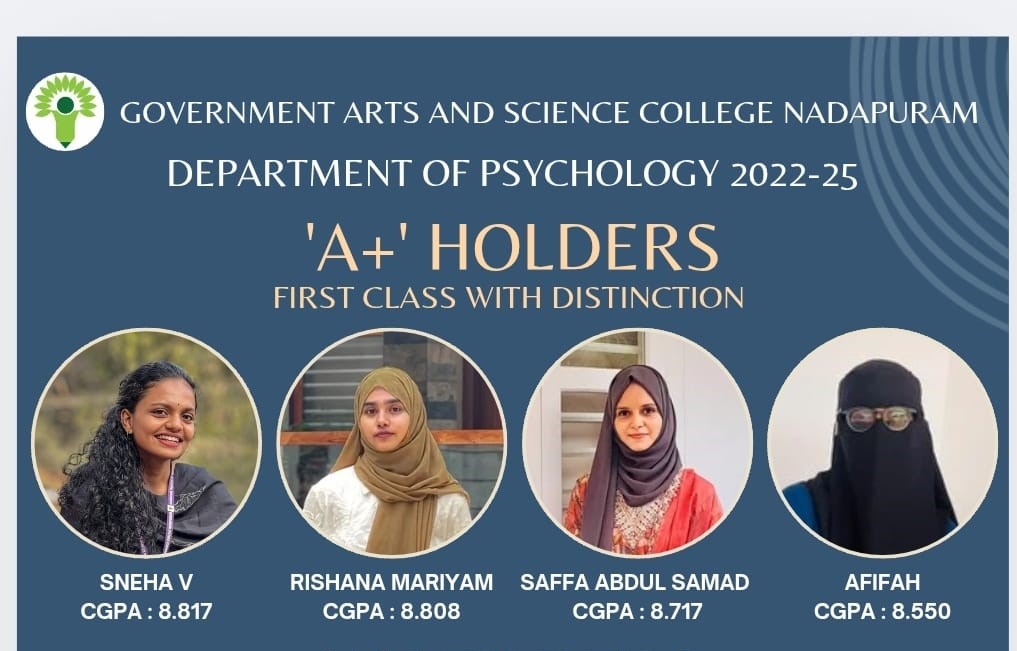 Government Arts and Science College Nadapuram holds a unique position of pride in the education history of the district of Kozhikode and is known for providing quality education in English, Physics, Commerce, Psychology and Economics.This rural-focus institution, tries its best to combine academic excellence with value based education and facilitates a conducive environment for overall development of students. The faculty members are very much involved in grooming our students with a clear vision for the future and supporting their quest of knowledge with a motto of ‘SOCIAL JUSTICE THROUGH EDUCATION’.