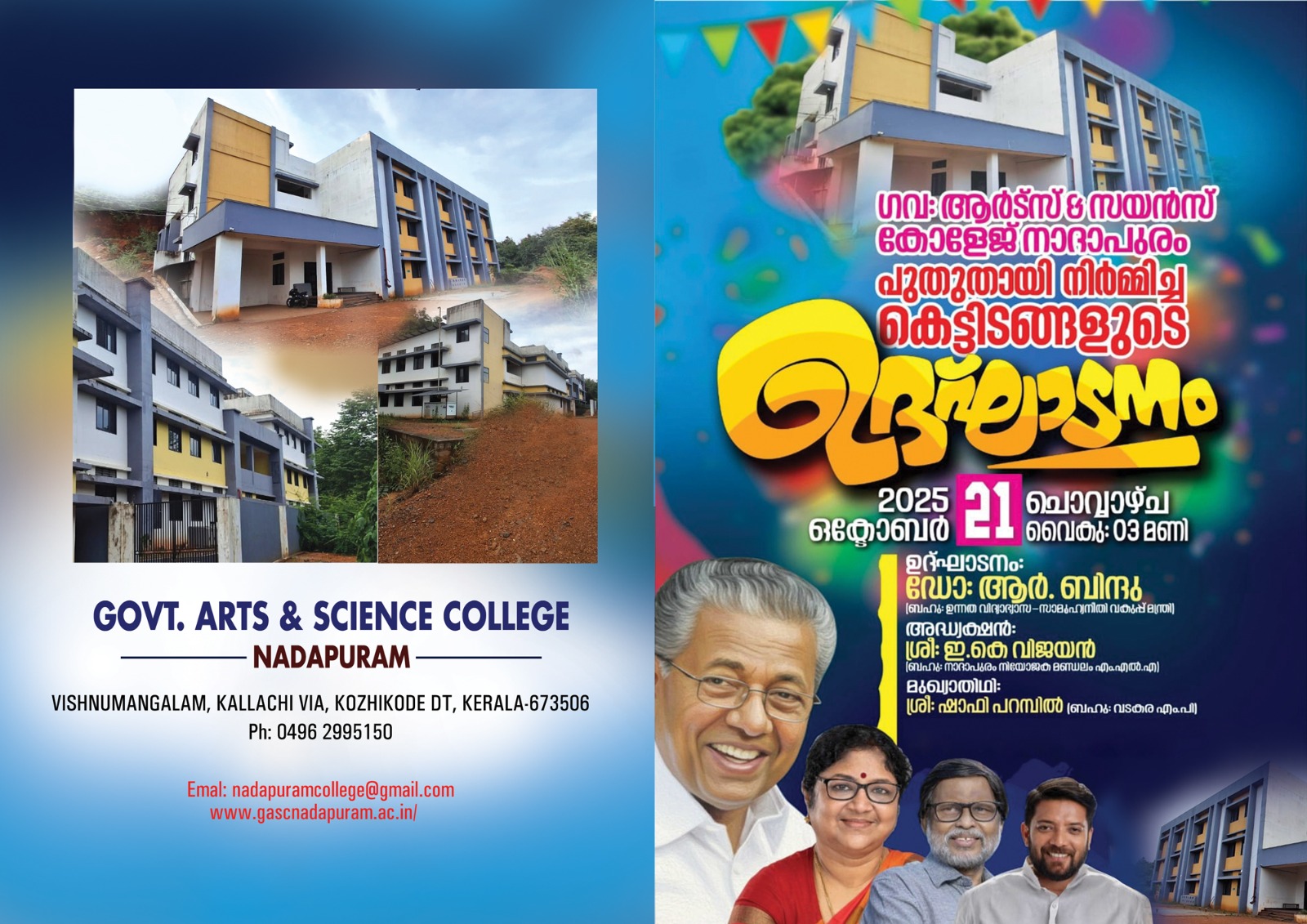 Vishnumangalam po, Kallachi via, Kozhikode.Email: nadapuramcollege@gmail.com.